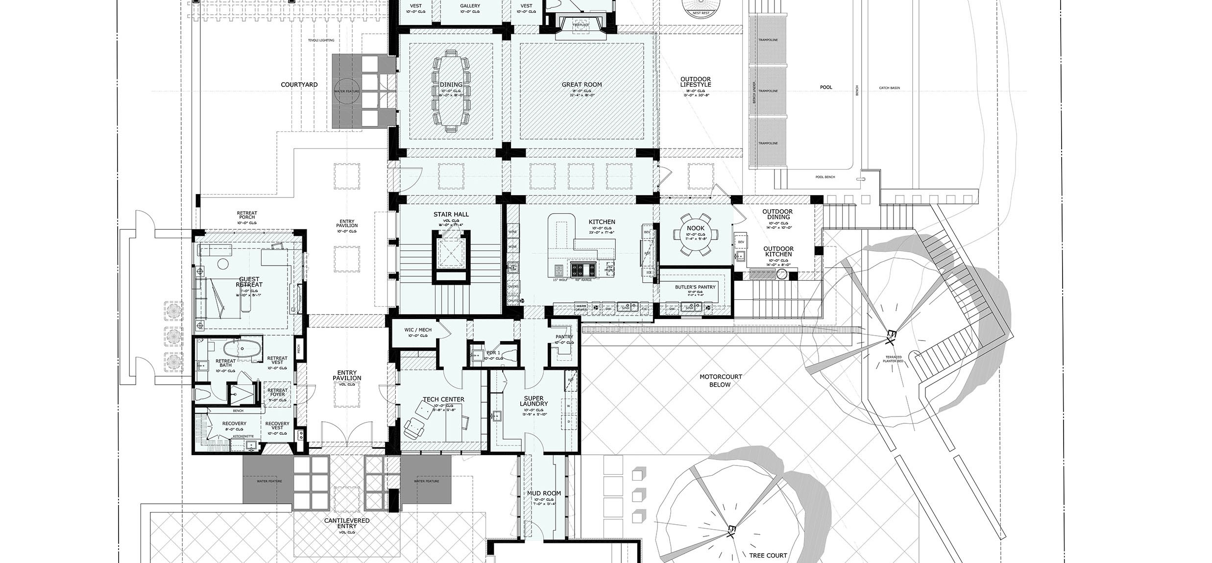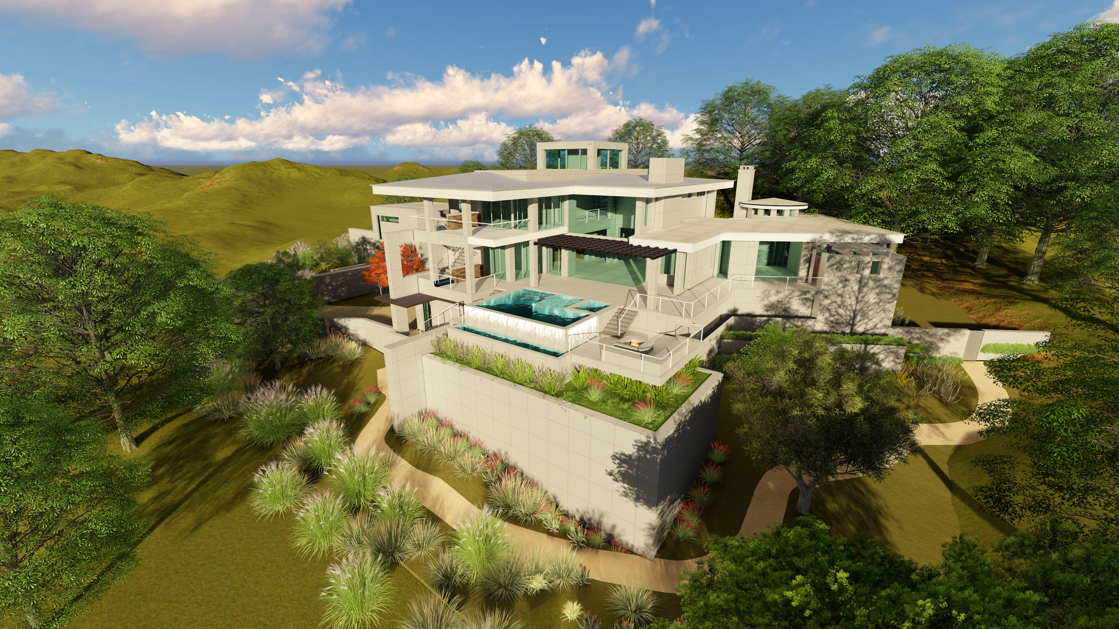 The Cinematographer’s Residence creates the ultimate Resort Dream Home destination. A terraced site allows for spectacular Hill Country views while the architecture frames and celebrates the panorama. Large glass openings blur the boundaries between indoor and outdoor living spaces. Courtyards, covered terraces, Outdoor Living and Dining areas bring nature into the structure allowing natural light and ventilation to penetrate every space. Luxury amenities include a subterranean show car Garage, Elevator with central Stair Hall, Gourmet Kitchen with Catering Kitchen, Formal Dining, Great Room, Wine Tasting Lounge, two separate Guest Retreats, and an Owner’s Suite with Grotto Bath and spectacular Closets.