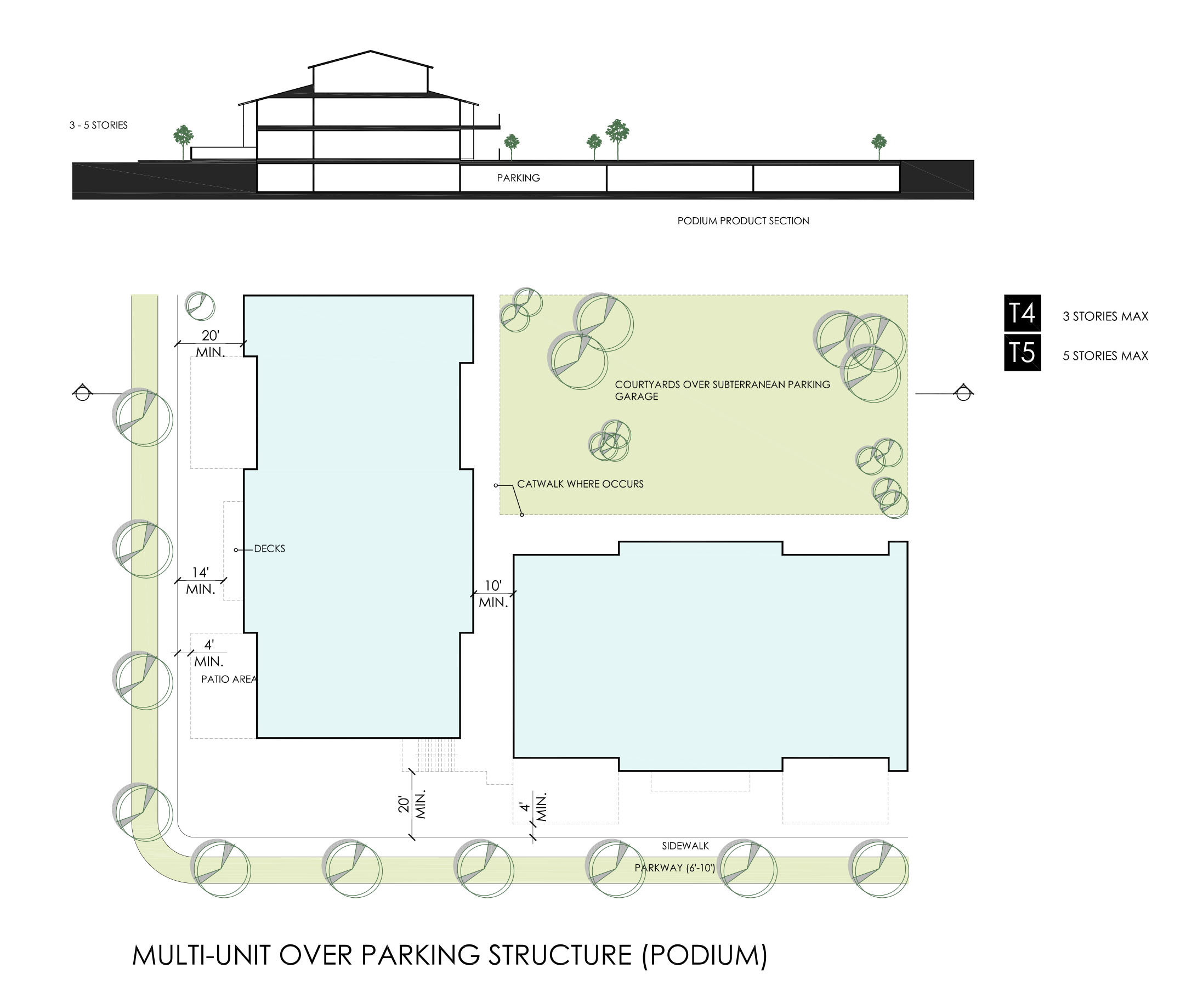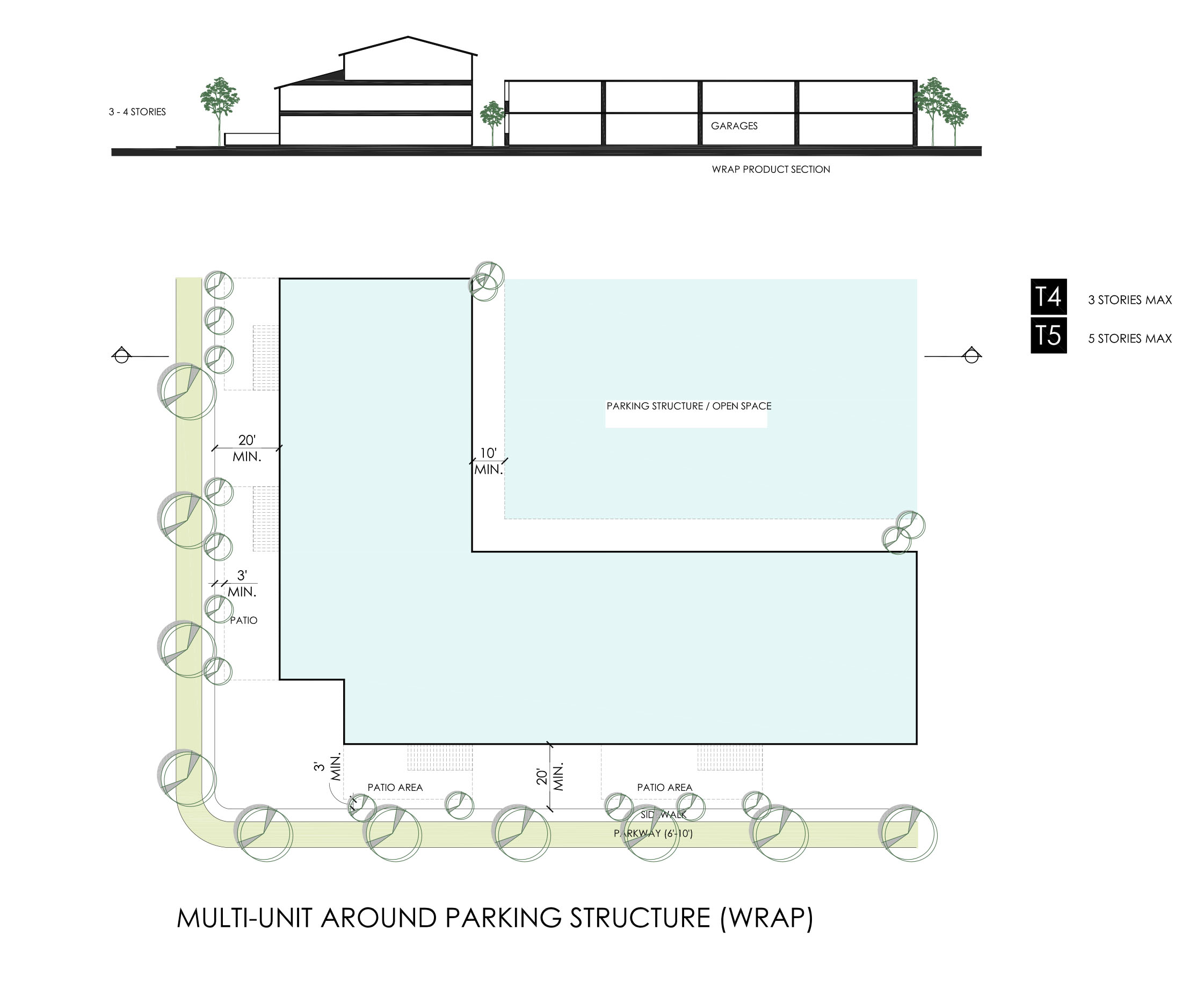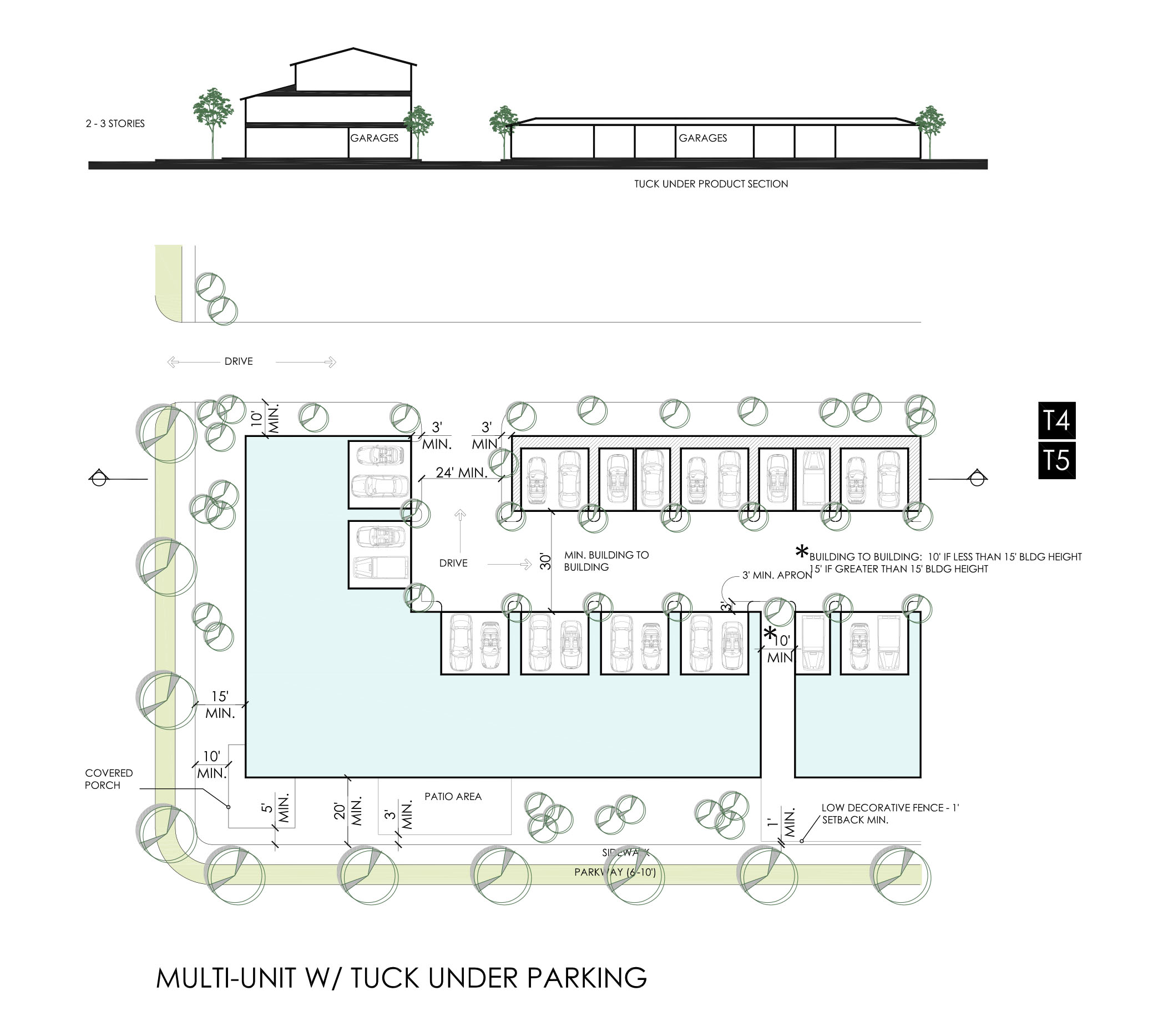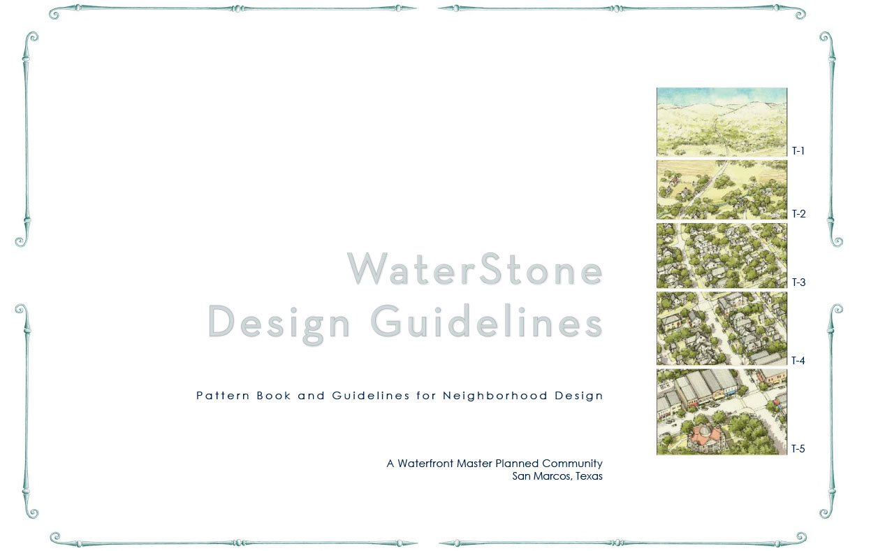 A complete set of Community Guidelines were established for the overall development including a Regulating Plan, zoning and setback restrictions, parking, lighting, landscape, edge conditions, and building typologies.
