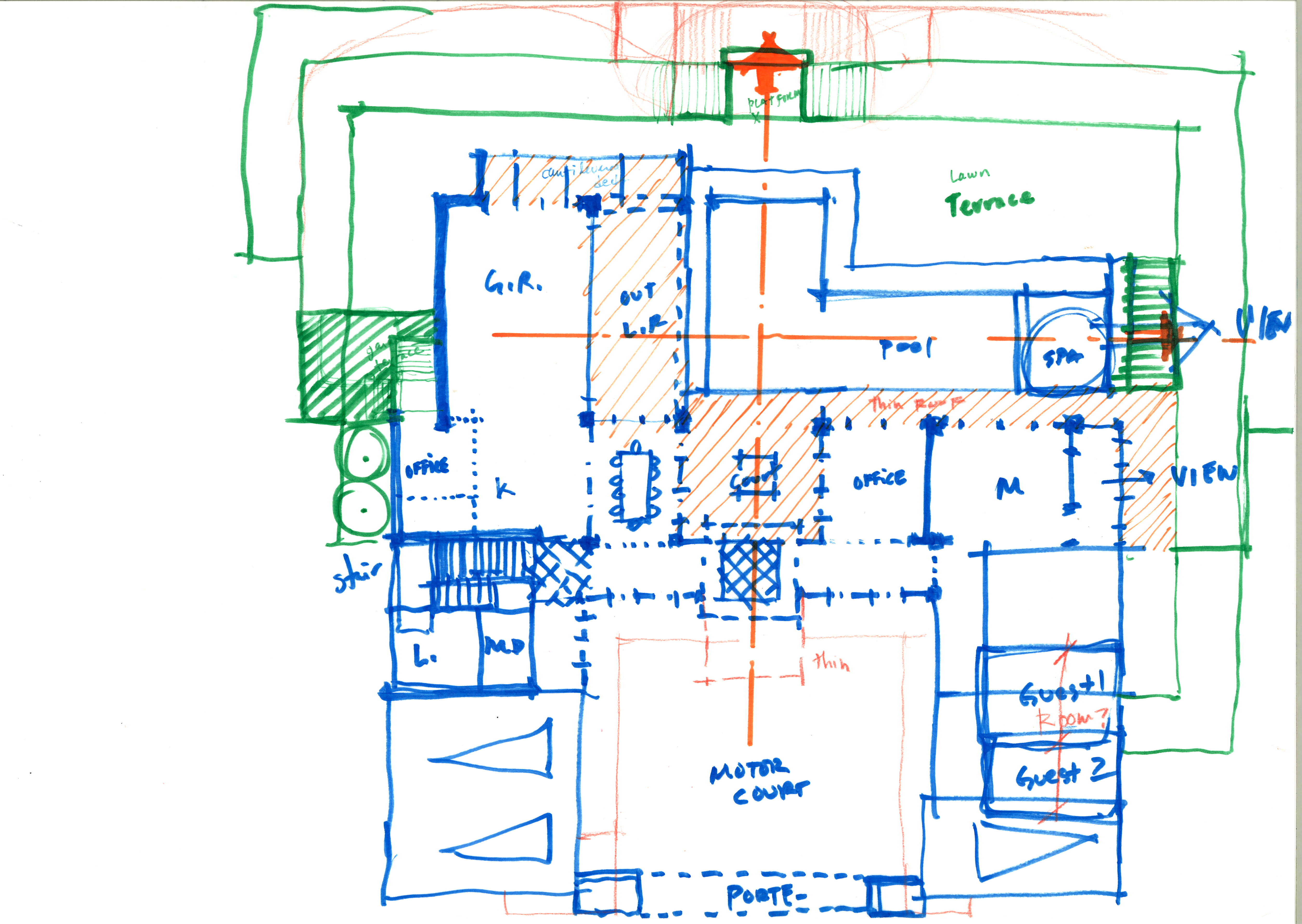 A tired 11,000 square foot Texas Tuscan luxury home was removed to make room for a fresh new Modern home with much less floor area. Traditional separate spaces of Living, Parlor, Family, and Dining are redefined and consolidated into a Great Room concept with adjacent spaces flowing into each other instead of compartmentalization.