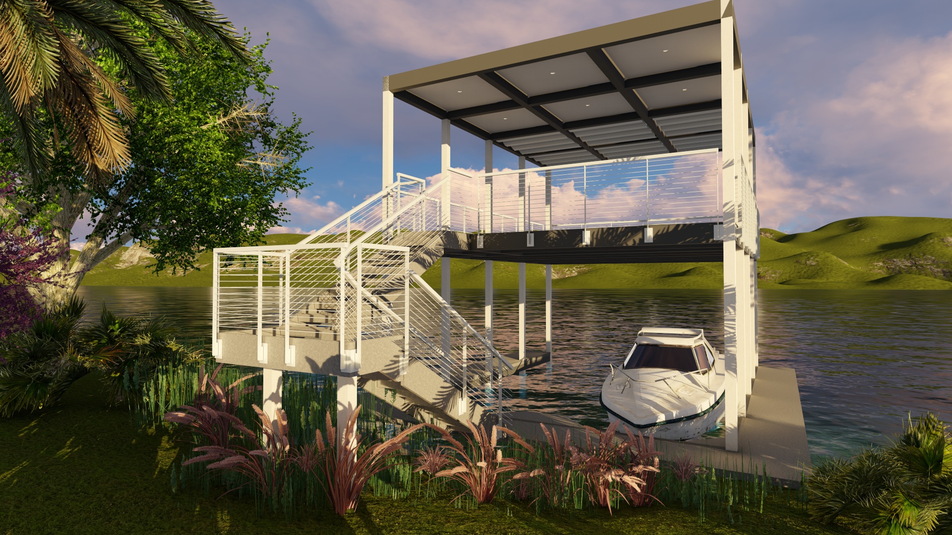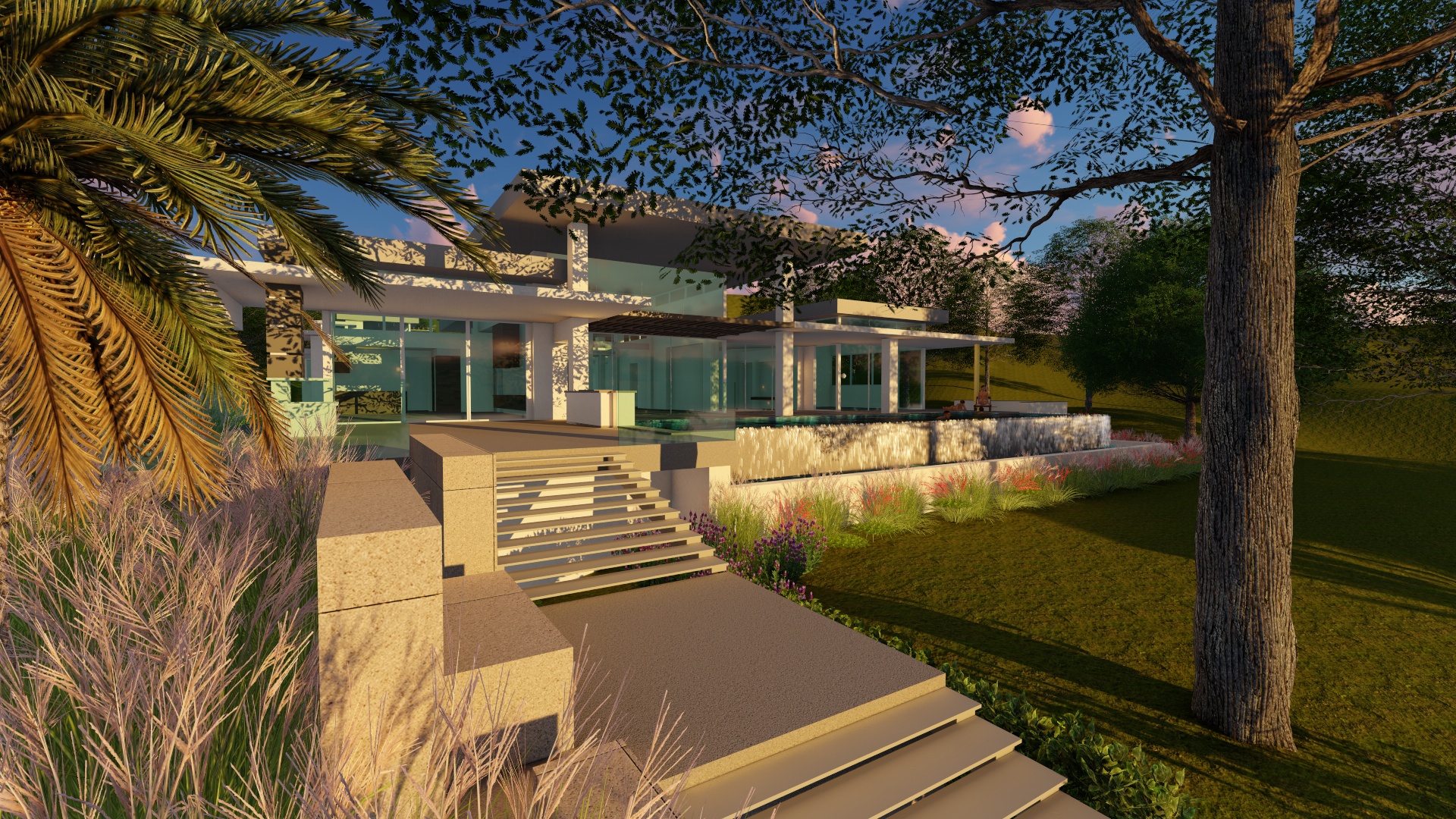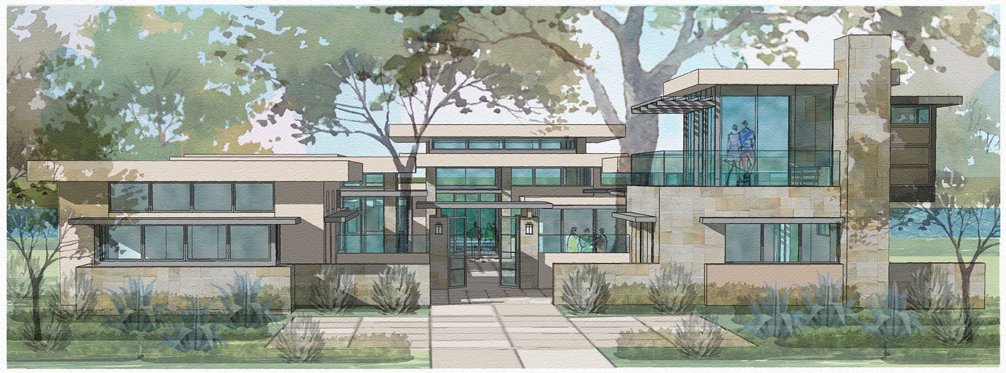 The tremendous natural beauty of this unique lakefront site inspired the vision for this heirloom estate. Architectural masses are organized around a giant Pecan tree forming an organic canopy above a central courtyard. Extended horizontal roof planes of steel, wood, and plaster shade expansive glass walls and frame views of nature in all directions. A Resort Pool steps down to a secluded lower pool terrace, which leads to a covered boat dock with a second floor lounge over the water. A detached second floor guest suite, perched up in the main tree canopy, serves as a destination retreat, known as ‘the Treehouse.’ The layered composition of the design reinforces a naturally modern lifestyle with upscale amenities and abundant opportunities for indoor / outdoor living.
