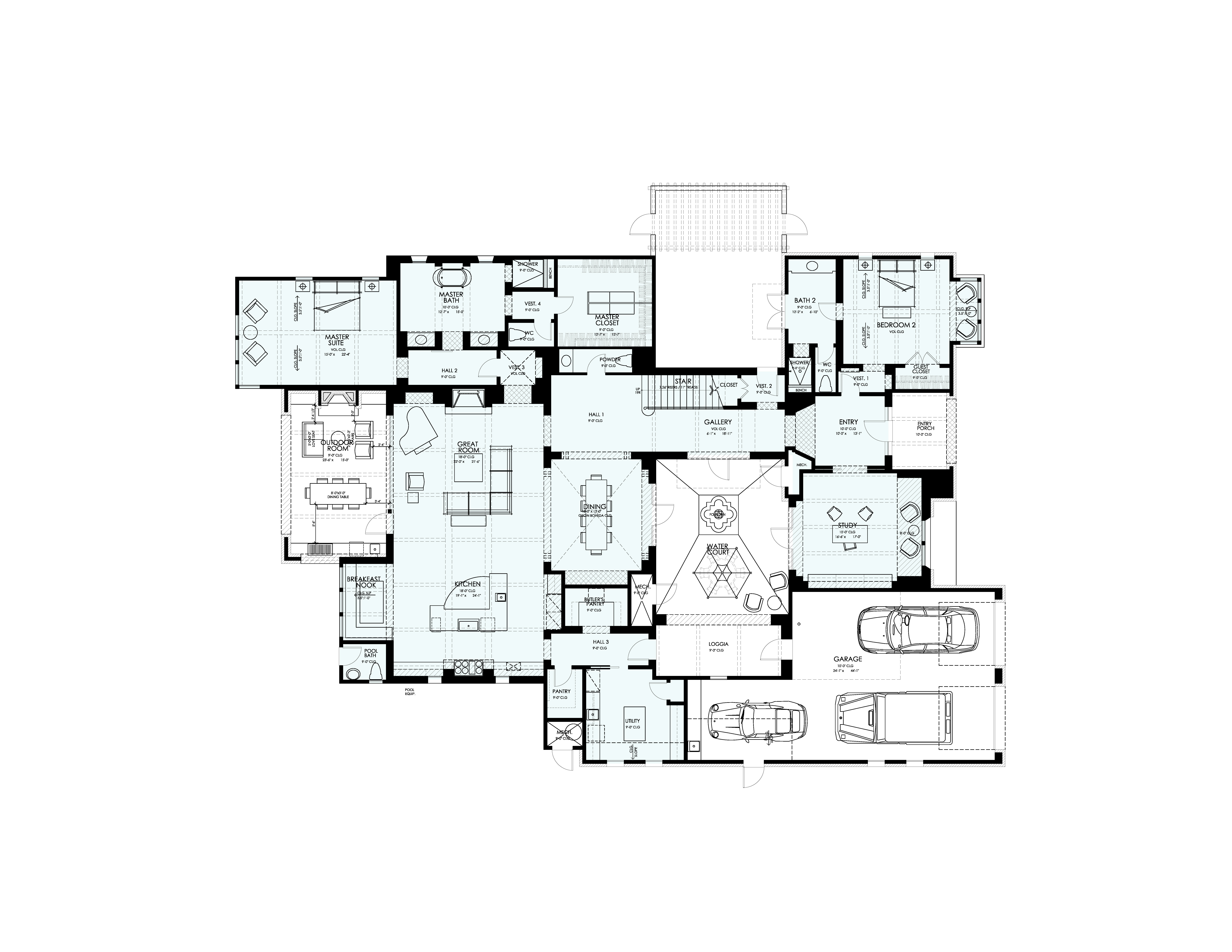 Comprehensive Site design, Architectural design, and Landscape design combine to create an authentic stone courtyard home within the private enclave of the Preserve Collection.  Two courtyards split the structure from front to back, allowing for more of the central spaces to have exterior access to natural light and flow to the outdoors.  Native plant species are used throughout along with drought tolerant specialties.  Pool, spa, trellis, fountains, and arrival plaza were all designed as an integral part of the architecture.