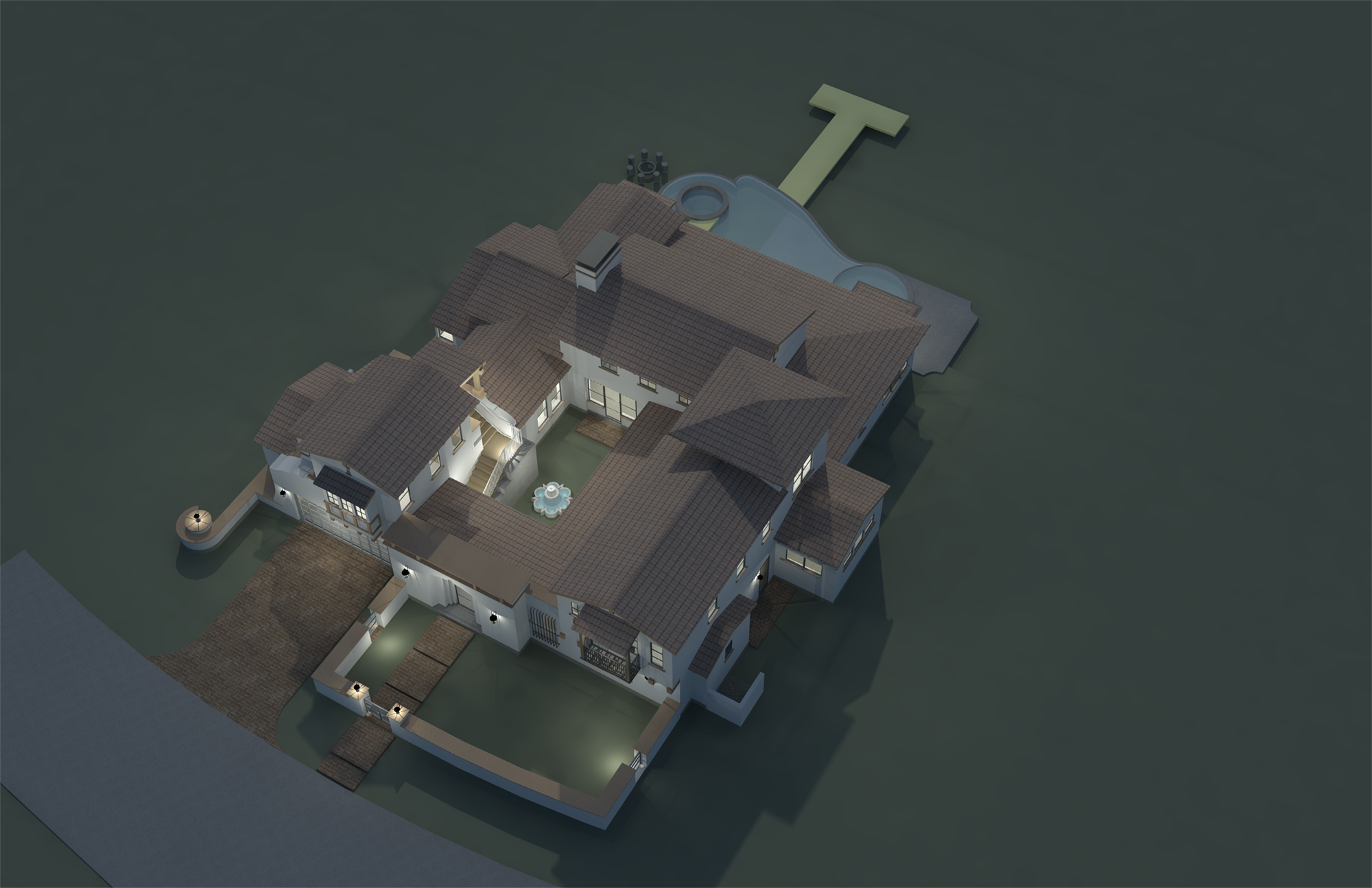 The unique courtyard organizing feature of traditional Spanish and Andalusian style homes lends to the amplification of indoor / outdoor spatial interaction while simultaneously making the spaces feel larger. This small but sophisticated home has an elegant feel and has the same level of amenities as other much larger custom homes. A gourmet kitchen with oversized island is connected to the Great Room while the private owner’s suite has a resort style bath, oversized closets, and views out towards the water. The pool, spa, and outdoor grotto shower all remind the family of their favorite resort properties that they visit while on vacation.